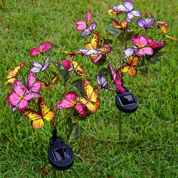 Te vrtne luči na sončno energijo z realističnimi metulji iz blaga in večbarvnimi pravljičnimi LED lučkami bodo zagotovo osupnile in navdušile vsakogar. S svojim edinstvenim dizajnom dodajte svojemu vrtnemu ambientu pridih čarobnosti. LED luči so energetsko učinkovite in oddajajo topel, vabljiv sij.