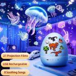 Odstranite senčnik svetilke in razkrijte visokoločljiv projektor, ki projicira očarljive slike, kot so dinozavri, zvezde in morske deklice, ter ustvari čarobno vzdušje.