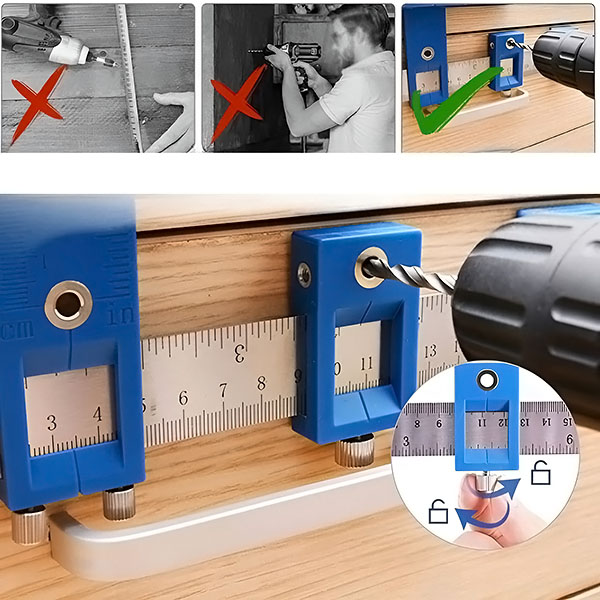 🛠️ Vedno popolno vrtanje! Z našo nastavljivo centrirno šablono si olajšajte delo. Natančno izvrtajte luknje v leseno pohištvo in drugo s hitrim in natančnim centriranjem za vsak projekt.