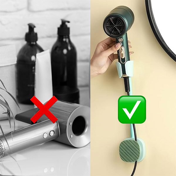 Ohranite svojo kopalnico brez nereda s to stensko, prostorsko varčno rešitvijo. Preprosto ga pritrdite na katero koli površino v kopalnici in začnite oblikovati – namestitev brez poškodb v nekaj sekundah! Poleg tega ustreza 99% sušilnikov za lase za popolno udobje!