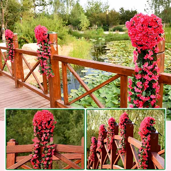 Vrtne ograje, balkonske ograje, vhodna vrata, okenski okvirji, notranje stene, stopnišča, ozadja za dogodke in poročna dekoracija – HANGROSE deluje povsod, kjer lahko nekaj obesite ali pritrdite. Uporaba na prostem: odporno na vremenske vplive in UV žarke. Uporaba v zaprtih prostorih: dnevne sobe, hodniki in stene spalnic. Hranite ločeno od neposrednih virov toplote in odprtega ognja.