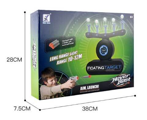 Namestitev je preprosta: pet kroglic postavite na stebričke, vklopite igračo in kroglice bodo lebdele v zraku! Nato začnite s tekmovanjem in s priloženo pištolo poskusite kroglice zadeti kar se da hitro.