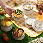 Uživajte v toplih domačih obrokih, kamorkoli greste, s tem kompletom večplastnih posod za hrano.