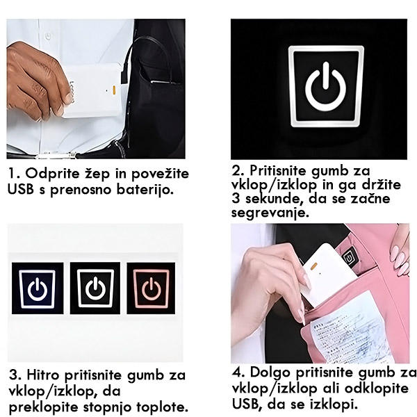 🧍 4 Ogrevana območja: Prsni koš, hrbet, spodnji del hrbta in vrat