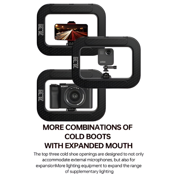 Baterija s kapaciteto 4400 mAh se popolnoma napolni preko vrat Type-C in deluje do 2 uri brezžično – vzemite jo v katero koli sobo, na zunanjo lokacijo ali dogodek, ne da bi iskali vtičnico. Vgrajene namizne noge se takoj razklopijo, univerzalni nastavek “hot shoe” pa se pripne neposredno na kamero ali stativ, ko potrebujete prostoročno kadriranje.