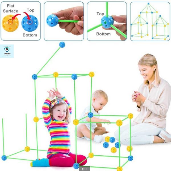 Omogočite ustvarjalnost svojih otrok z gradbenim kompletom FORTKID! Zgradite čarobno trdnjavo, v kateri bodo vaši malčki lahko raziskovali, se igrali ter sanjarili. S 87 kosi trpežnih plastičnih palic in spojev lahko ustvarijo neskončne strukture želenih gradov ali pa zgradijo veliko trdnjavo in vladajo kot pravi kralji in kraljice!