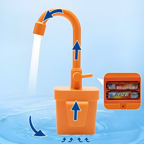 Ergonomska zasnova je idealna za malčke, saj je pipa enostavna za upravljanje, nastavitev pa je preprosta. S pritiskom na gumb lahko otroci aktivirajo pretok vode in začnejo z igro. To je odličen način, da osvojijo osnovna kuhinjska opravila, hkrati pa spodbujajo koordinacijo rok in oči ter fino motoriko.