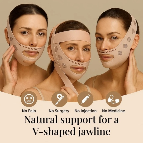 Nežna kompresija usmerjena navzgor pomaga zmanjšati zabuhlost in definirati čeljustno linijo.