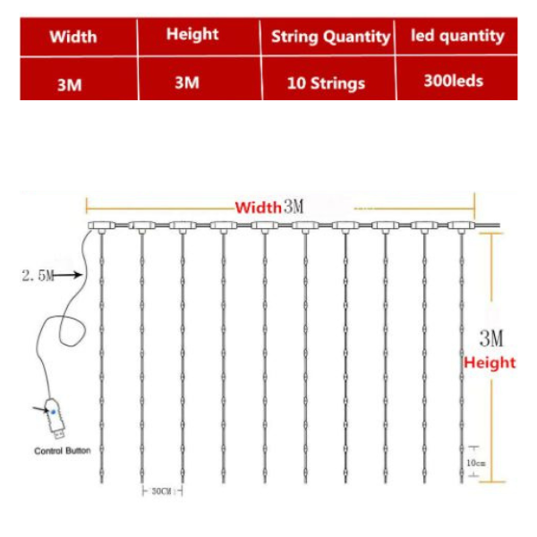 1 x CURLIGHT LED zavesa (3 x 3 m) z USB priklopom