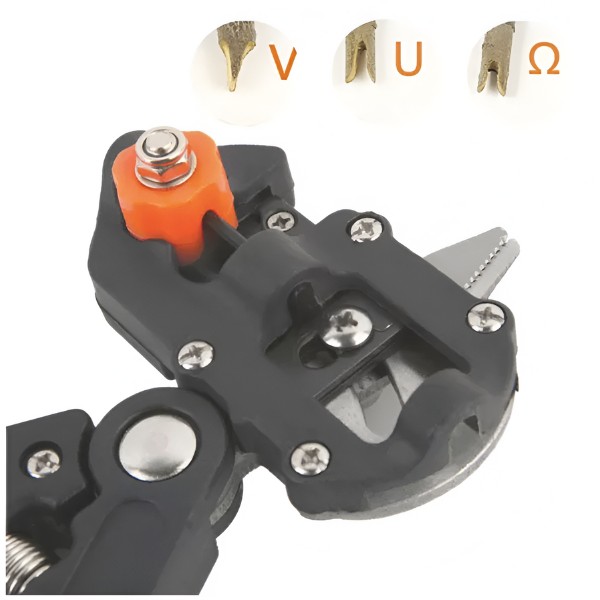 To orodje vključuje 3 zamenljiva rezila (V, U, Ω), ki omogočajo izvajanje različnih vrst rezov, zaradi česar je popolno za različne naloge obrezovanja in cepljenja.