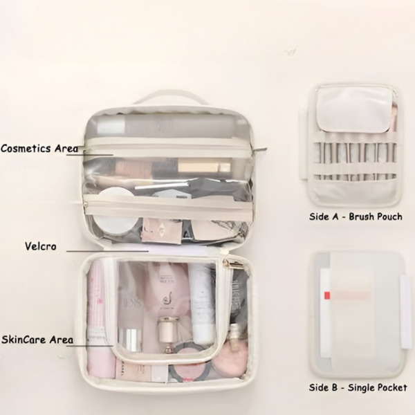 Ne glede na to, ali ste doma ali na poti, ta toaletna torbica z več predelki omogoča, da bo lepotna rutina brez težav in organizirana.