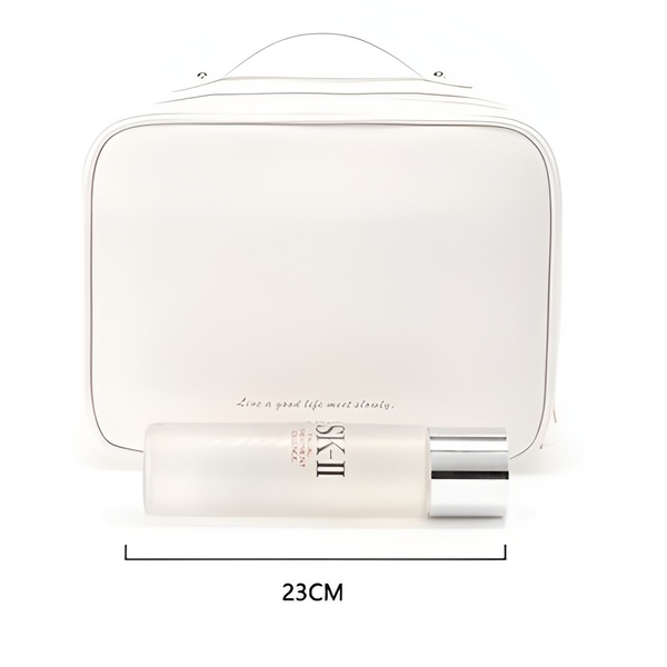 Torbica je izdelana iz trpežnega, vodoodpornega materiala in varuje vašo kozmetiko pred poškodbami, hkrati pa ji dodaja pridih razkošja.